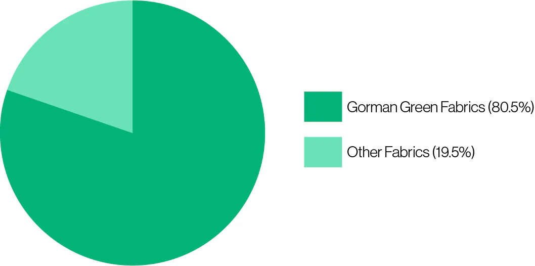 In 2018 we introduced Gorman Green as an internal benchmark to support our design team in making more sustainable fibre and fabric choices. European Union research suggests that 80% of product related environmental impacts can be influenced during the design phase.
